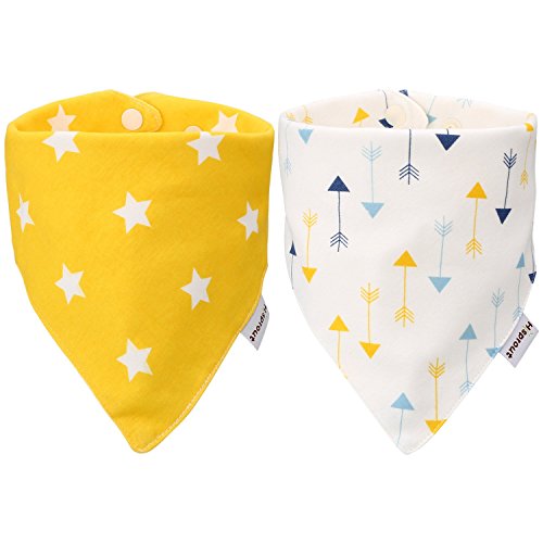 Soft cotton baby bandana drool bibs -- 100% high-quality cotton fabric, soft and comfortable, breathable and absorbent. Lots of cute patterns available. Modern set of 2 trendy unisex bibs, easy to wash.