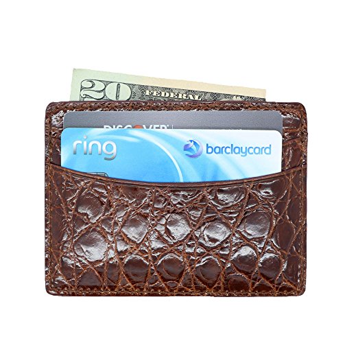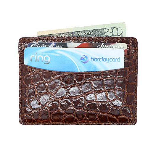 -. Title : Cognac Glazed Small to Medium Grain Genuine Alligator 5 Pocket Card Case MADE IN USA FBA15