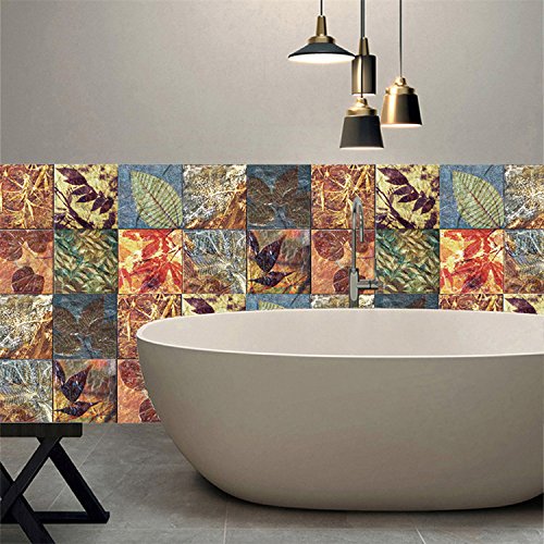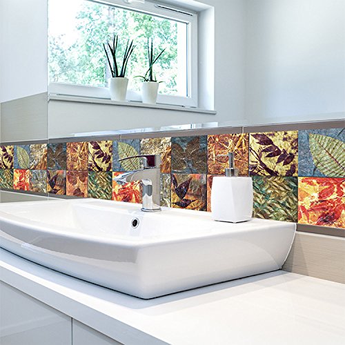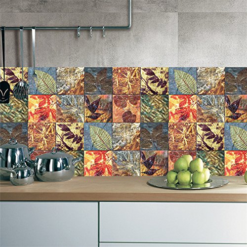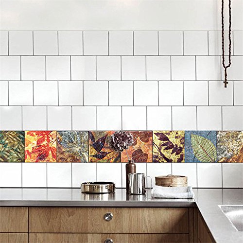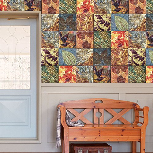 AmazingWall Vintage Style Leaves Plant Tiles Sticker Wall Decoration Home Mural Art Backsplash 7.87x7.87" 10 Pcs/set