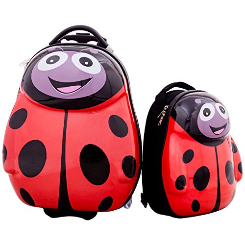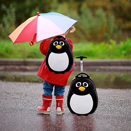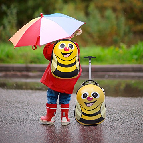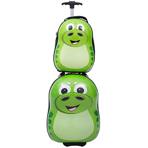 Product Description Description This adorable luggage set including a cute animal shaped suitcase and a matching backpack is perfect for traveling.This set includes a 19" Trolley Suitcase with multi-directional wheels and ergonomically designed telescoping handles which will add much convenience to the trip and a 13" backpack which comes with straps for easy to carry. Toddler luggage with hard shell protection but light weight, Perfect as hand luggage on Airlines, Weekends Away or Sleep-overs. Kids can take a backpack and pull a rolling luggage alone on the journey to cultivate independence of kids. This luggage set are perfect combination for a trip with children. Backpack can be also regarded as school bag which is cool.