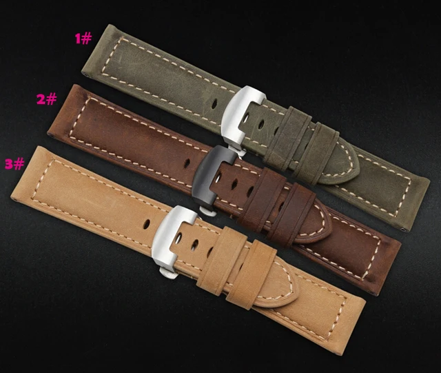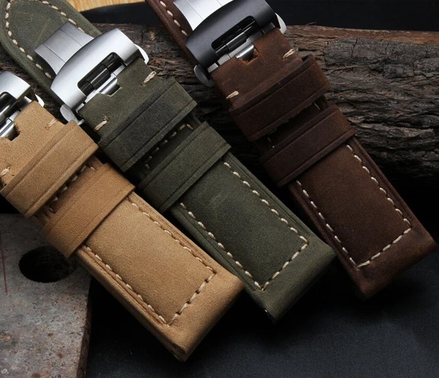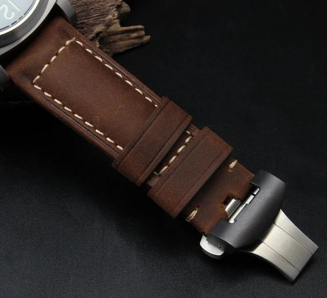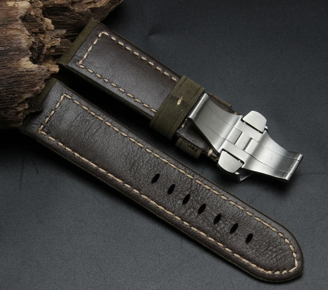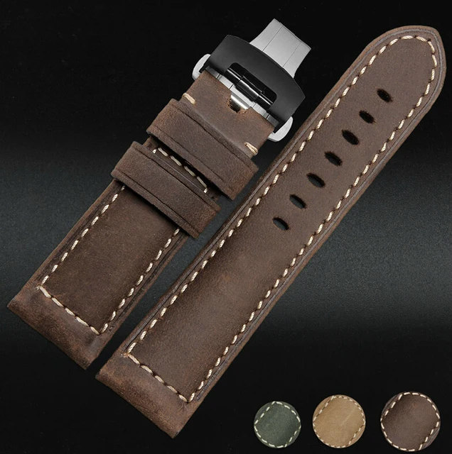 | [해외]시계 스트랩 24 미리메터 블랙 나비 버클 정품 가죽 시계 밴드 팔찌 스트랩 무료 배송 |