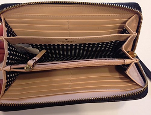 Kate Spade Astor Court Quilted Neda Clutch Wallet Black Leather WLRU1240 The Kate Spade Astor Court Neda Walletis a soft, pleated leather zip top wallet with an excellent selection of features that can accommodate a lot of stuff. It's beautifully lined with beige leather and a cute black & white satin lining inside the change compartment and billfolds. The Kate Spade Astor Court Neda Wallet fits snugly into your hand and the soft quilted texture is smooth against your skin.Feature