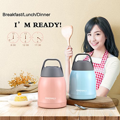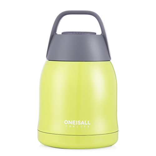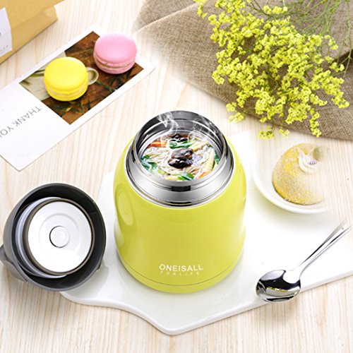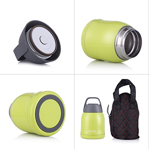 ONEISALL Food Flask Lunch Box, Double Wall Stainless Steel Vacuum Insulated Food Jar Thermos Food/Soup Container with Spoon and Carry Bag, 600ML/21oz (Green)