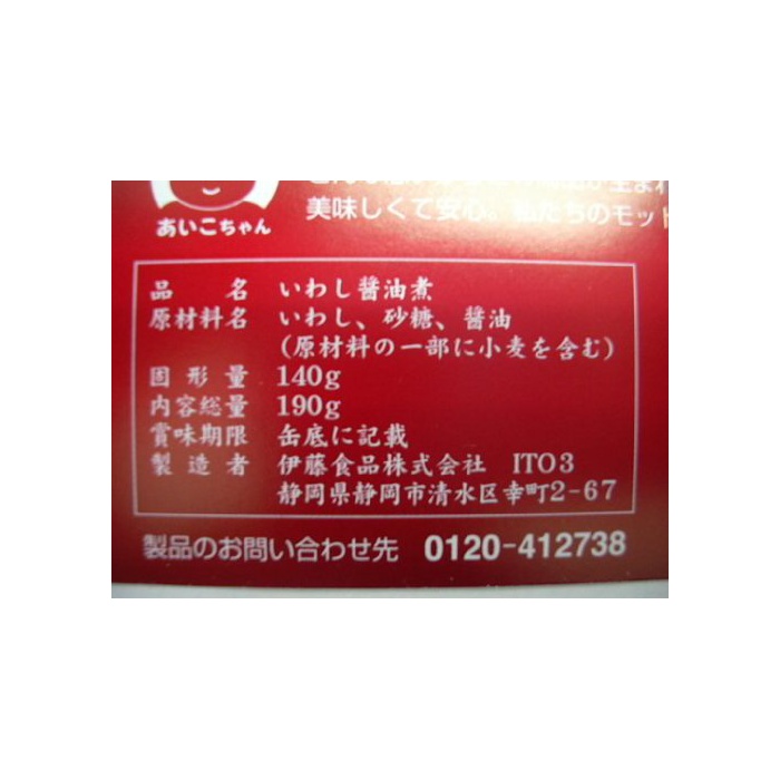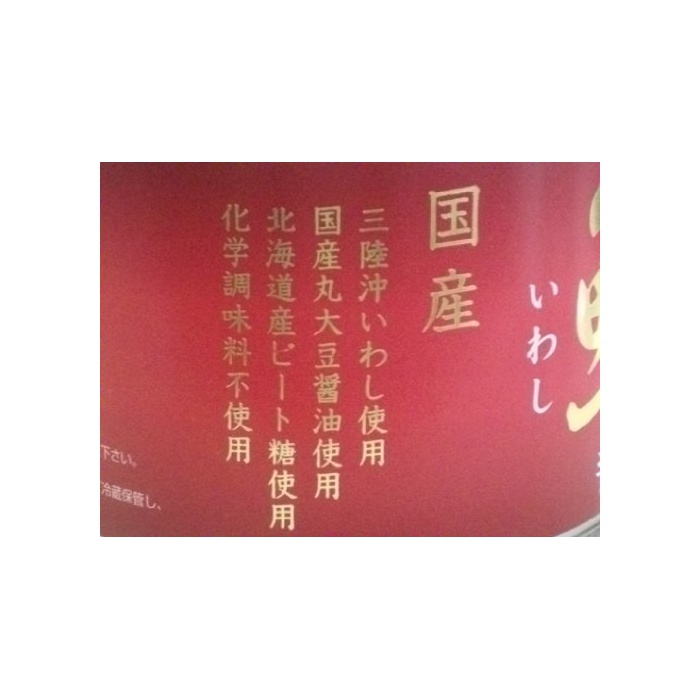 원재료:정어리(산리쿠산)고, 설탕(홋카이도산)고, 간장(국산)고,(원재료의 일부에 밀을 포함한다)