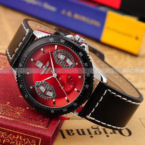 -. Title : AMPM24 メンズ レッド・ブラック レザーハンド ハンド ワインディング 機械式 スポーツ 腕時計PMW009