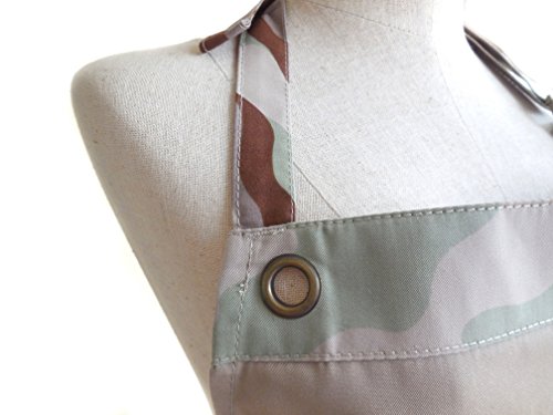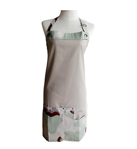 Brown Kitchen Cooking Baking Apron with Camouflage Pattern for Women Girls, Adjustable Neck with Pockets