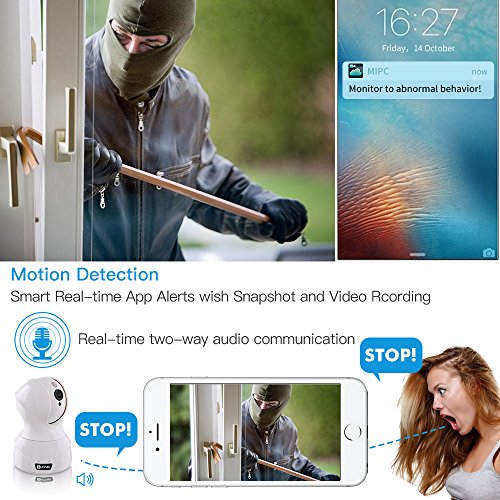 -. Feature : EASY INSTALLATION and QUICK SETUP:quick and easy to set up via iPhone/android smartphone using the "MIPC"APP which is available in Apple app store and Google play store,or can be downloaded by scanning the QR code.And the camera can be installed on wall or ceiling with the bracket included. / STABLE,HIGH-DIFINITION,CLEAR NIGHT VISION,100% SEAMLESS STREAMING WITH NO DELAY powered by ProHD camera and high-performance IBM server in US;Real 720P(1280 x 720p,30fps,Image quality clearer than most so-called 1080P on the market) with Enhanced Zoom function(magnifies up to 6x), ,recording image and video,support up to 64GB micro SD card.Smart playback available with SD card. / MOTION DETECTION&REAL-TIME ALERTS NOTIFICATIO via APP & 2-way audio with built-in mic,speaker and 3D noise reduction electronic component.The sensitivity of motion detection is adjustable,and the alarm schedule and alarm sound can also be set up as well. / MULTIPLE USER&MULTIPLE DEVICES VIEWING SIMULTANEOUSLY,and NO RISK OF P.R.IVACY DISCLOSURE with secure wireless WPA / WPA2 AES Encryption (2.4Ghz networks only); Complicated camera ID and default password change required for the access safety .Compatible with iOS and Android mobile devices as well as Windows PC and Apple Mac Web Browsers (IE, Firefox and Safari). / REMOTE VIEWING &RECORDING via smartphone, tablet, Mac and PC; IR LED enhanced Night Vision with 1 dot matrix infrared lights,and the IR distance is up to 32ft in total darkness;Note:To protect P.R.Ivacy, you have to download the tool "sdtool" from our official website to read the Micro SD card, or you can just contact with our service team, we will send you tool immediately.