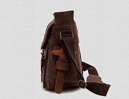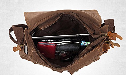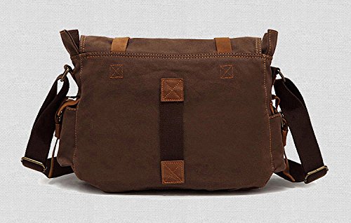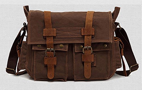 -. Binding : Misc. -. Brand : Yoovi -. Feature : STRONG AND DURABLE; thick high density canvas and real cow leather will last years of unquestionable reliability / SECURE DESIGN; with magnetic fasteners outside and zippers closure inside, maximum security for valuables is guaranteed / VERSATILE; designed for a variety of practical, casual uses by men, women, boys and girls. / VINTAGE LOOK; dark brown genuine leather details reminiscent of old fashioned bag / UNIQUELY STYLISH; though retro-styled, the design perfectly gels with any modern look -. IsAutographed : 0 -. IsMemorabilia : 0 -. Label : Houyue -. Manufacturer : Houyue -. PackageQuantity : 1 -. ProductGroup : Sports -. ProductTypeName : SPORTING_GOODS -. Publisher : Houyue -. Studio : Houyue -. Title : Yoovi Military Canvas Shoulder Messenger Bag Leather Straps