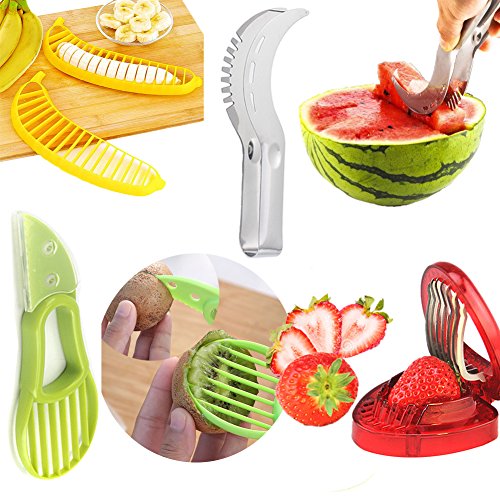 Aremazing Fruit Slicer Set of 4 Banana Watermelon Kiwi & Avocado Slicer Strawberry Huller Fruit Knife Kitchen Tools Value Pack