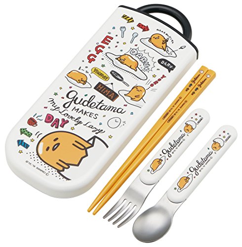 Skater Sanrio Gudetama Trio Set Spoon,Fork,Chopsticks w/ Case TCS1AM from Japan