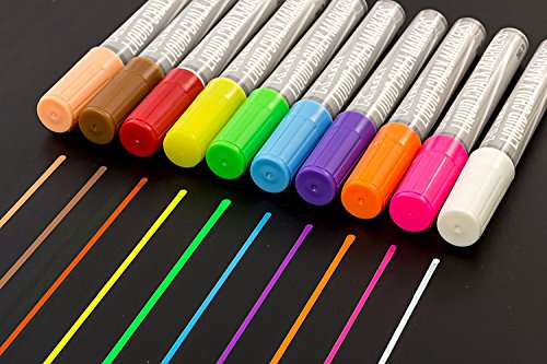 Fluorescent Liquid Chalk Markers (10 Pack) By Kassa - Child Safe (Non-Toxic) - 2 Tip Sizes (6 and 4 mm) Chalkboard Paint Markers - Erasable Ink for Chalk Board (Nonporous), Glass and Windows