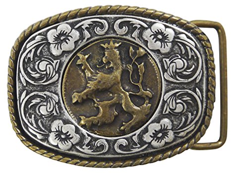 This floral, traditional belt buckle is beautifully made and comes in a brass finish. This bi-color buckle features a floral pattern and a lion. Suitable for belts that are approx. 1.5' (40 mm / 4?cm) wide. Our buckles are made in Italy and are all of premium quality. - Shipping takes 3-6 days in Europe and generally not more than 8-10 days to non-European countries.