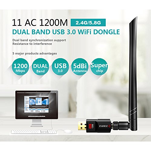 Studio : ZIJIEZ Publisher : ZIJIEZ Binding : Electronics Product Description Dual Band AC1200Mbps Wireless Speed: Upgrade to dual-band Wi-Fi with AC1200 WiFi USB Adapter. Plug this adapter into your desktop or laptop computer and delivers wi-fi connectivity up to 867Mbps on 5GHz bands, 300Mbps on 2.4GHz bands.