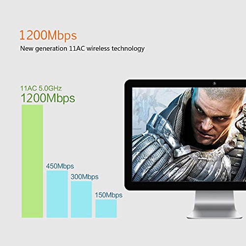 1、Dual Band AC1200Mbps Wireless Speed: Use more clear 5GHz WiFi band for on-line streaming of HD video, gaming, music, photo, and use 2.4GHz band for web surfing, online chatting. 2、High Gain 5dBi Omni-directional Dual Band Antenna: 5dBi detachable omni-directional antenna provides high performance and increased coverage for your wireless network. 3、USB 3.0 with gold plated: Comes with USB 3.0 Port which Works 10 Times Faster than USB 2.0; USB Port with Gold Plated Ensures More Stable and Solid Internet Connection; 4、Easy Setup: Install the driver from the included CD. After the driver is installed, you can use the built-in wireless utility in your operating system to connect to a wireless network.