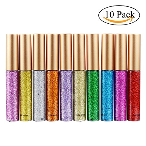 Spdoo 10 Colors Eyeliner Glitter Waterproof Shimmer Pigment Silver Gold Metallic Liquid Glitters Eyeliner