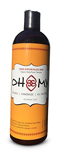 Organic African Black Soap by Oh My - Raw Organic Soap Acne, Eczema, Dry Skin, Psoriasis, Scar Removal, Face & Body Wash, Authentic Liquid Black Soap...