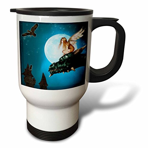 3dRose tm_25967_1 Fairy Dragon Fantasy with Moon and Owls Travel Mug, 14-Ounce, Stainless Steel