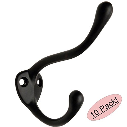 Designers Impressions 57488 Flat Black Heavy Duty Coat & Hat Hook - 10 Pack