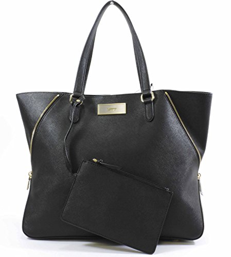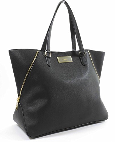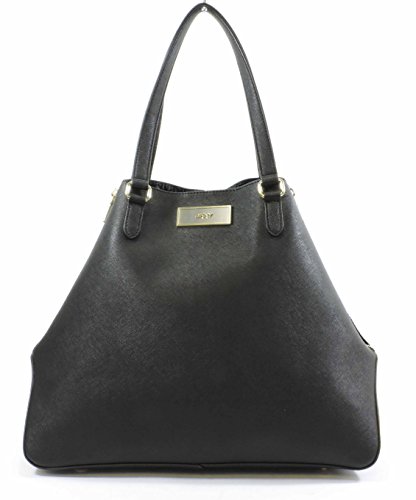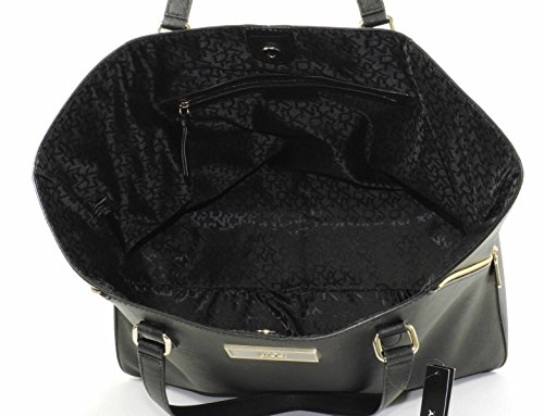 DKNY Black Saffiano Leather Double Zip Tote with Detachable Wristlet - MSRP $298