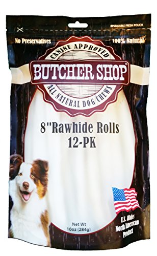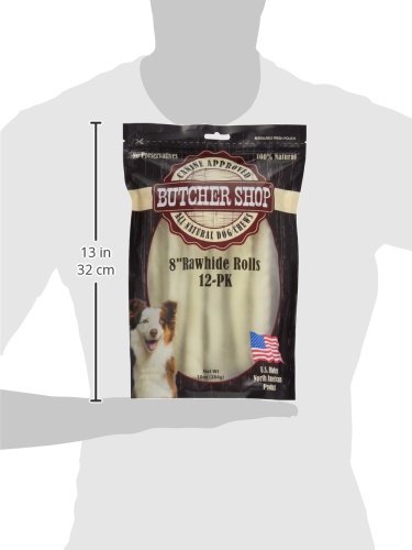 -. Binding : Misc. -. Brand : Butcher Shop -. EAN : 0817113019047 -. Feature : 12 Pack of 8 Inch Rawhide Rolls, USA Hides / Your dog will love this 100% natural rawhide chew because it is the natural way to satisfy your dog's chewing needs. / The action of chewing allows your dog a healthy outlet to alleviate boredom while helping to reduce tartar accumulation on their teeth. / Always supervise you pet while using any pet product and or treat. / Cleans teeth and stimulates gums. -. Label : Boss Pet Products -. Manufacturer : Boss Pet Products -. Model : 019047 -. MPN : 019047 -. PackageQuantity : 1 -. PartNumber : 019047 -. ProductGroup : Pet Products -. ProductTypeName : PET_SUPPLIES -. Publisher : Boss Pet Products -. Size : .618 lb -. Studio : Boss Pet Products -. Title : Butcher Shop 8" Rawhide Rolls 100% Natural USA Hides (12 Pack), .618 lb -. UPC : 817113019047
