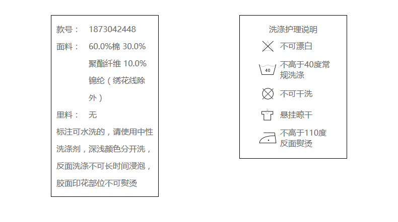 60.0%棉 30.0%聚酯纤维 10.0%锦纶(绣花线除外)