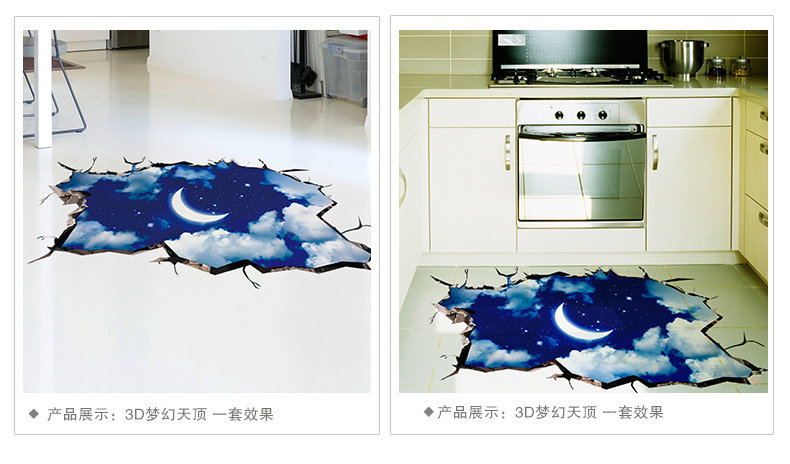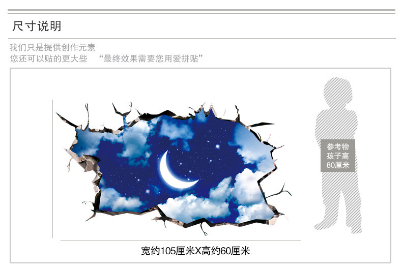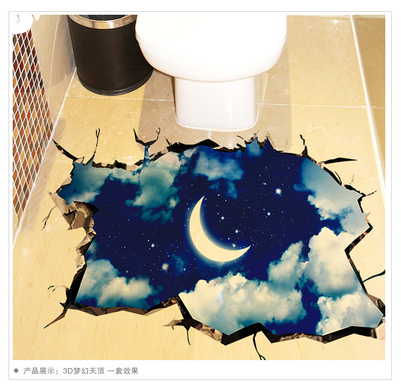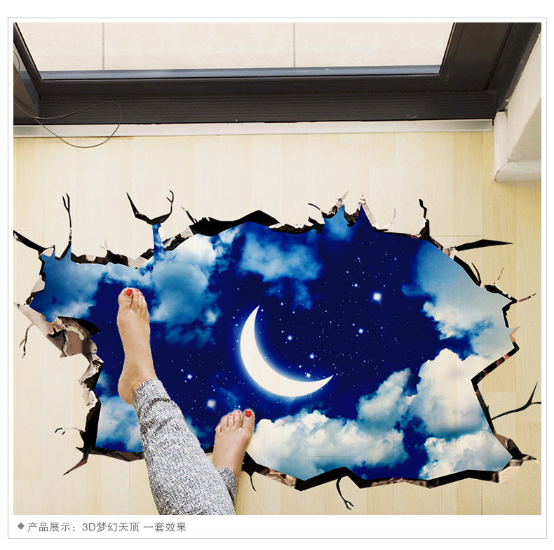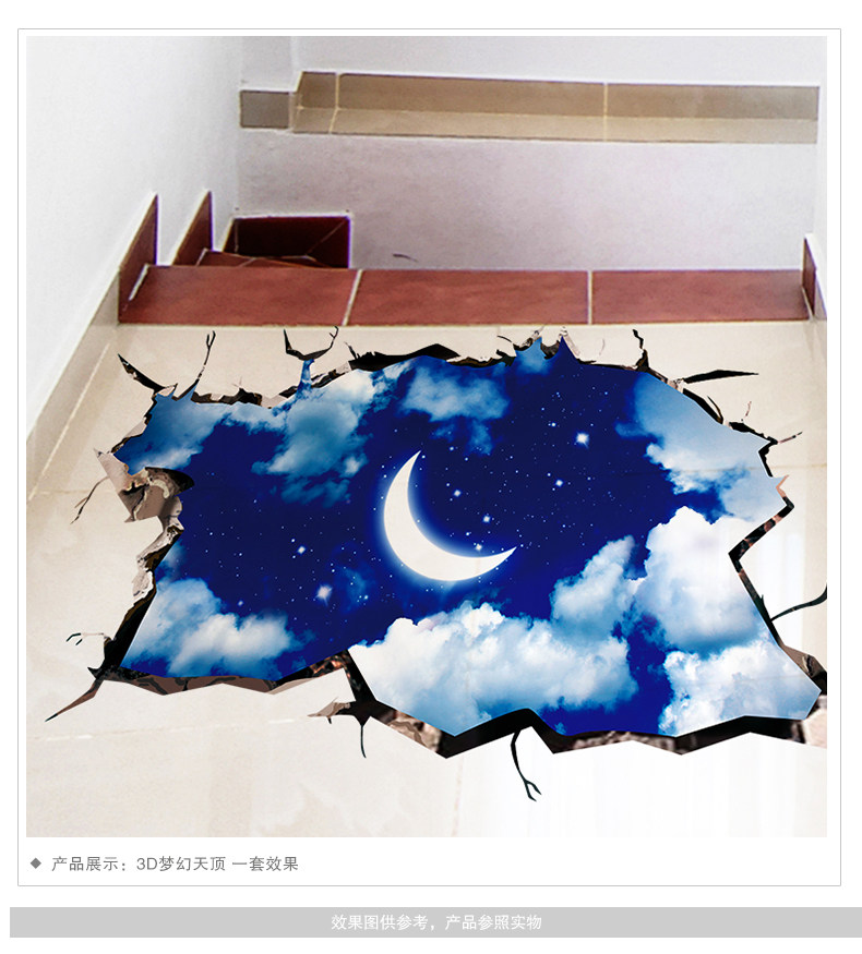 3D立体墙贴纸贴画房顶天花板客厅墙壁纸装饰自粘创意天空夜空月亮