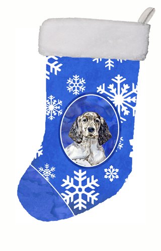 Caroline's Treasures English Setter Winter Snowflakes Holiday Christmas Stocking, 11 x 18", Multicolor