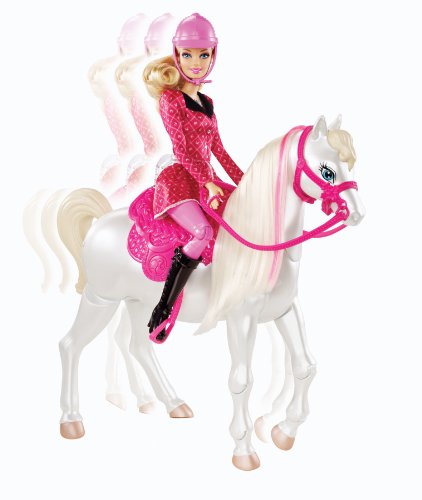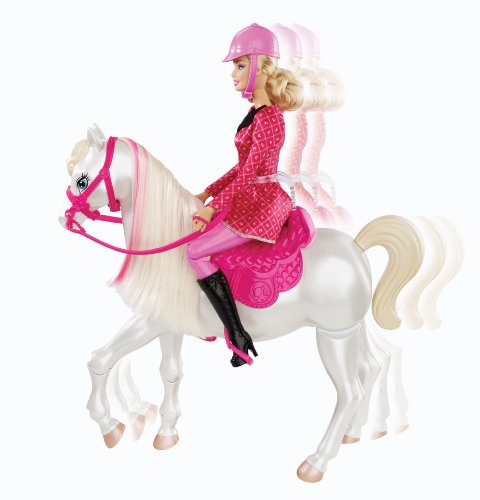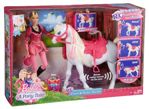 -. Binding : Toy -. Brand : Barbie -. EAN : 0746775191443 -. Feature : Inspired by the new Barbie Movie, Barbie and Her Sisters in A Pony Tale / Girls can recreate their favorite scenes from the new Barbie movie / This set celebrates Barbie doll's instant connection with a wild horse that she trains / Girls simply press the horse's forehead to turn it on to see it interact with Barbie doll / Collect all of your favorite Barbie in A Pony Tale Dolls and Horses for endless riding fun -. IsAdultProduct : 0 -. Label : Mattel -. Manufacturer : Mattel -. Model : Y1174 -. MPN : Y1174 -. PackageQuantity : 1 -. PartNumber : Y1174 -. ProductGroup : Toy -. ProductTypeName : TOYS_AND_GAMES -. Publisher : Mattel -. Studio : Mattel -. Title : Barbie and Her Sisters in a Pony Tale Train and Ride Horse Playset -. UPC : 746775191443 -. Warranty : 1 year warranty against manufacturer defects