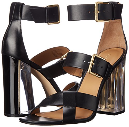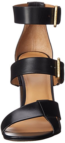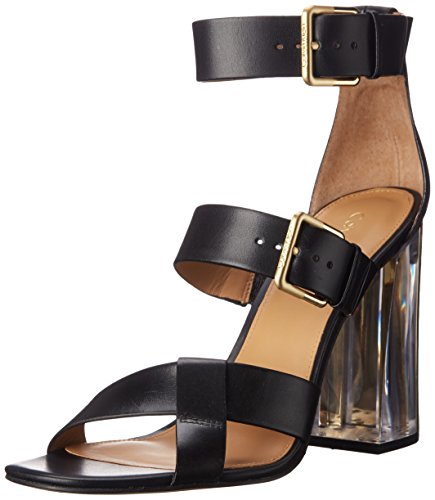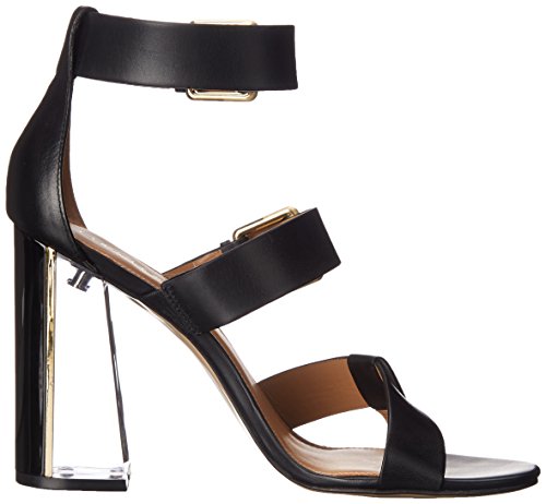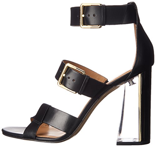 Triple-strap dress sandal featuring adjustable buckles at vamp and ankle