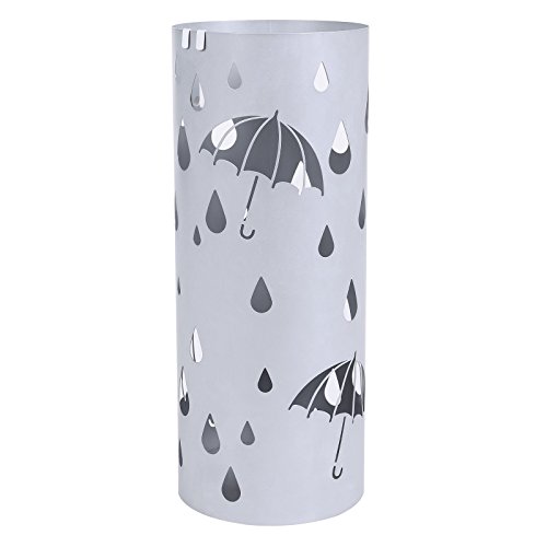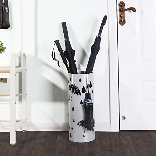 SONGMICS Metal Umbrella Stand Silver Gray Umbrella Holder Home Office Decor with Drip Tray and Hooks ULUC23S