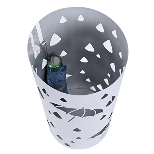 CONSIDERATE DETAIL DESIGN: User-friendly bottom plastic drip tray with a knob to protect your floor from water, especially for wooden floors; 2 extra small hooks for hanging fold-up umbrellas