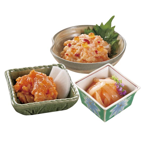 ●サーモン塩辛・生かんずり入サーモン塩辛・いかなんこつ明太造り(各200g)×各1
