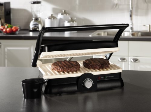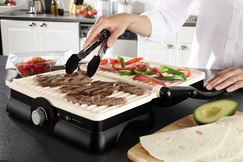 This Oster Panini maker and Grill is designed with a unique and innovative Dura Ceramic non-stick coating that last 4X longer than standard non-stick coatings and won't flake or peel. The Dura Ceramic surface provides exceptional non-stick performance and lasting durability. The safe and natural ceramic coating is PFOA and PTFE free as well, so you can grill with no worries. The Dura Ceramic finish cooks up to 20% faster to get you eating quicker and it easily wipes clean!.