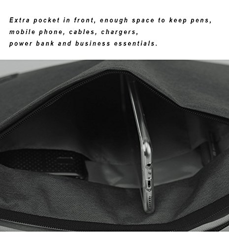 Diving material layer in the middle and canvas layer on front side make this sleeve splash-proof; Extra pocket in front, enough space to keep pens, mobile phone, cables, chargers, power bank and business essentials