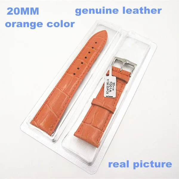 1 개 고품질 20 미리메터 정품 소 가죽 시계 밴드 시계 스트랩 오렌지 색상-06253