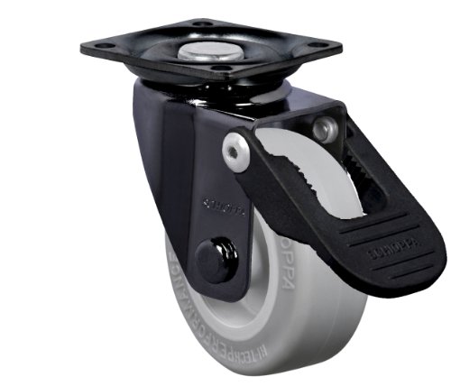 Schioppa, GLAP 210 SP FPI–BR, 2" (50 mm) Swivel Brake Caster, Non-Marking Very Soft Rubber Whl, 70 lbs, Plate: 1-21/32 x 1-21/32" (BH 1-1/4 x 1-1/4")