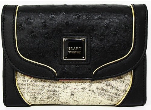 Medium Gorgeous Ostrich Textured Faux Leather TriFold Wallet/black