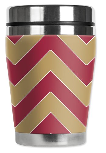 Mugzie San Francisco Football Colors Chevron "Mini" Travel Mug with Insulated Wetsuit Cover, 12 oz, Black