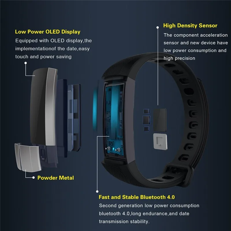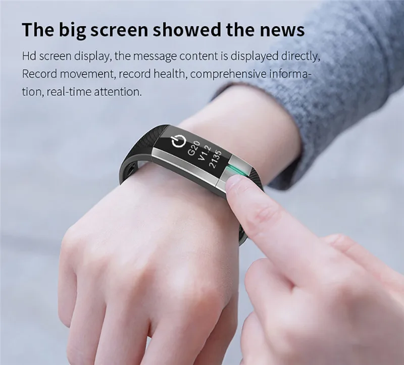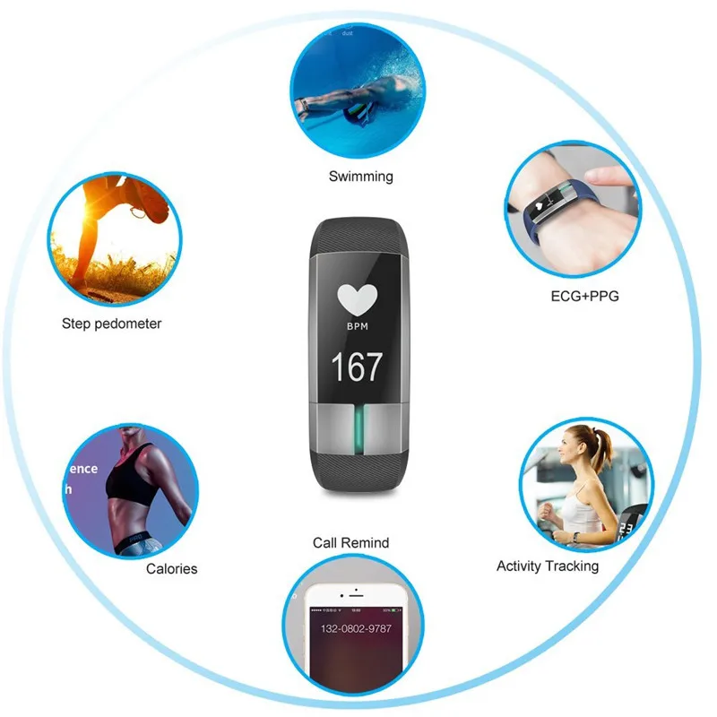 Function:Message Reminder,Thermometer,Passometer,Activity Tracker,Fitness Tracker,Blood Pressure,Call Reminder,Remote Control,Sleep Tracker,Heart Rate Tracker,Push Message,Social Media Notifications