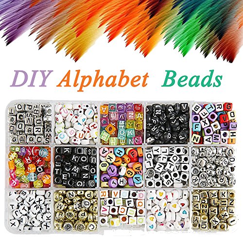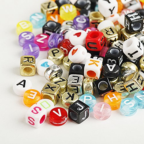 Alphabet Beads 1100pcs Mixed Acrylic Plastic Beads Assorted Color Alphabet Letter "A-Z" Cube Beads for DIY Bracelets, Necklaces, Key Chains and Kid Jewelry