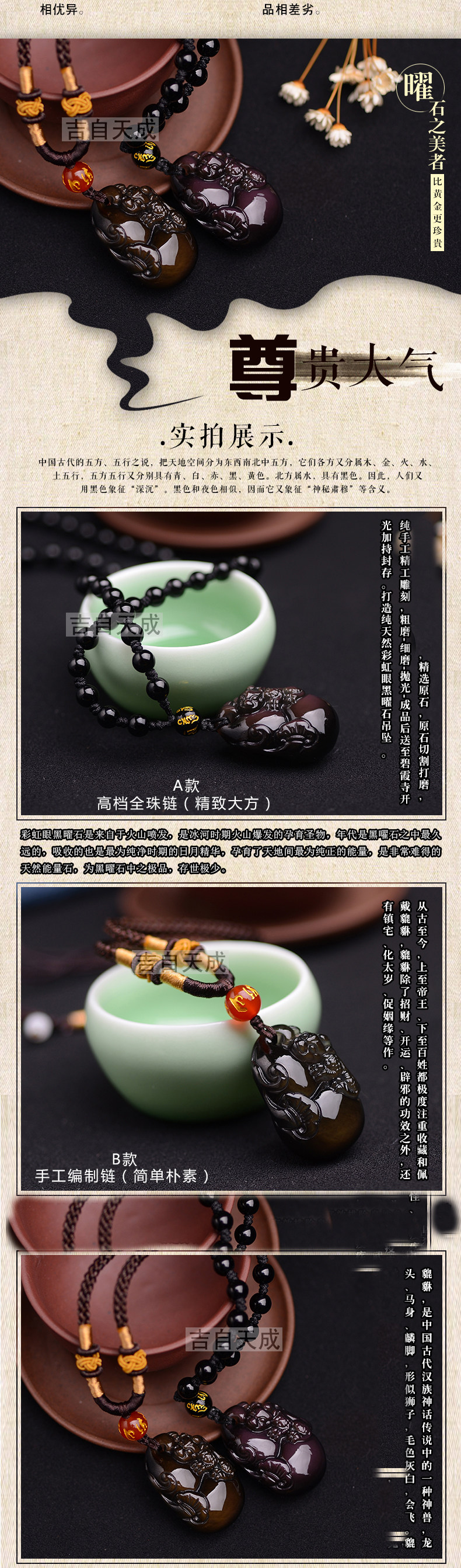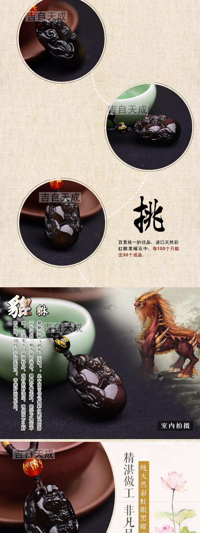 天然冰种黑曜石貔貅吊坠如意葫芦一世无忧水晶项链男女吉祥物