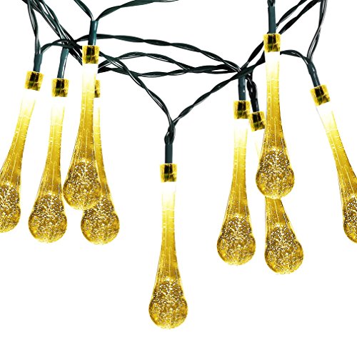 Water-chestnut Outdoor Solar String Lights 16 feet 30 LED Water Drop Fairy String Lighting for Christmas Party Home Patio