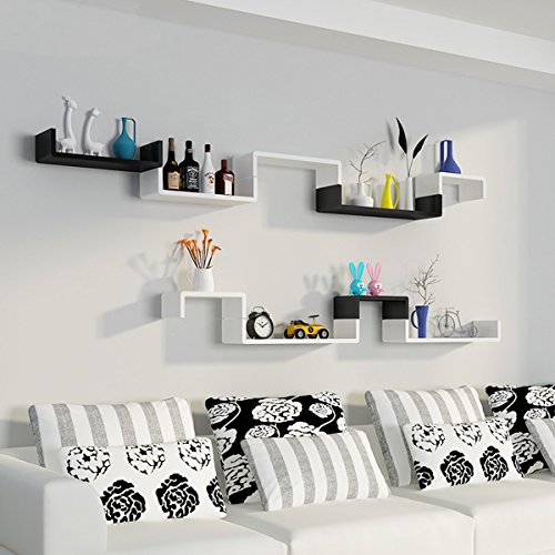 Set of 3 Floating Shelves U Shape Wall Mounted Bookshelf Storage Display Shelves (White)
