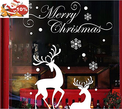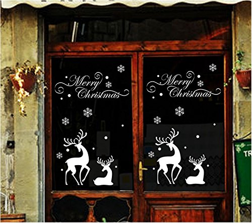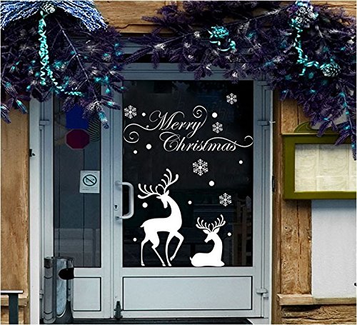 Christmas Window Stickers White Snowflake Reindeer Merry Christmas Window Decal , Removable DIY Glass Wall Festival Decals Murals Christmas Gift