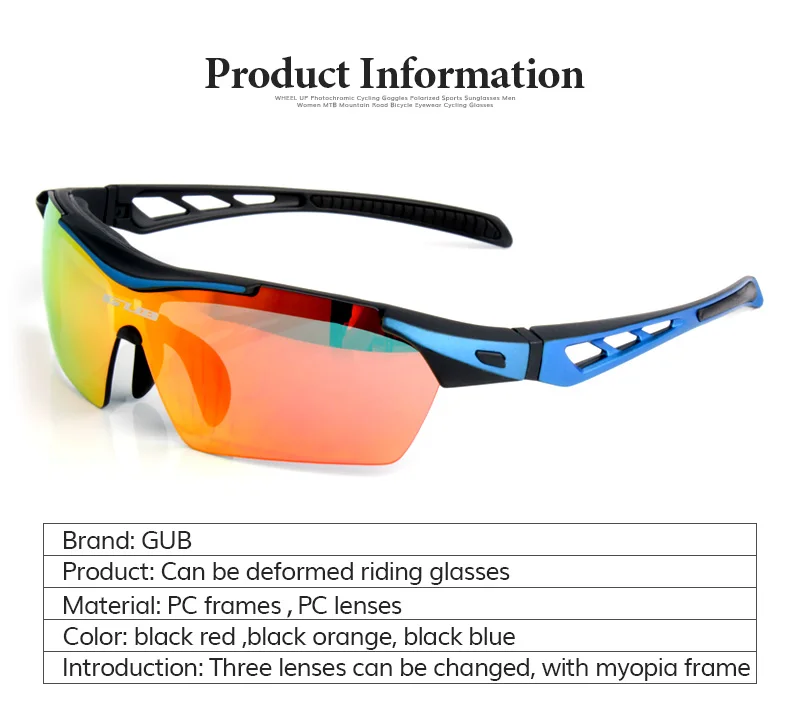 Replaceable Lens:1pcs colorful +1pcs Polarized +1pcs intensify lens