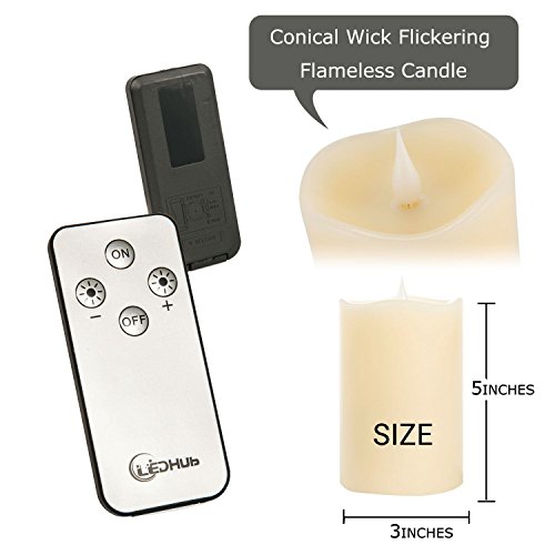 Flameless Candle 5'' With Conical Wick: Battery Operated (Energizer Batteries Included 550 hours battery life) - With Remote And Timer - New Version