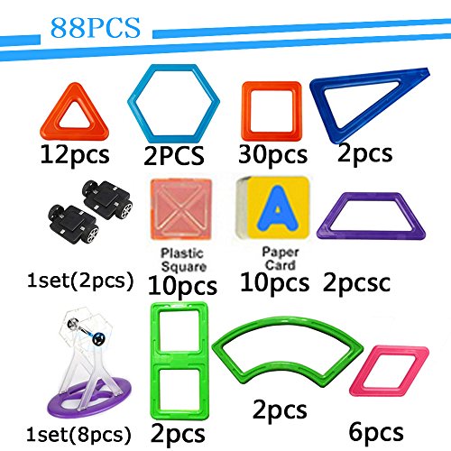 -. Title : Joy Mags Magnetic Blocks Solid Color Building Tiles Construction Stacking Toys Set (88 Pieces)