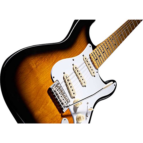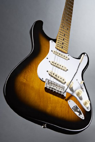 ReleaseDate : 2010-11-14 Studio : Squier by Fender Publisher : Squier by Fender Binding : Electronics Product Description The Classic Vibe Stratocaster ’50s provides unmistakable ’50s-era Fender® vibe and tone. The alder body has a Two-color Sunburst, Lake Placid Blue or Olympic White finish; the vintage-tint gloss-maple neck (Two-color Sunburst and Olympic White models only) has a maple fingerboard with 21 medium-jumbo frets and a modern 9.5” radius. That long-familiar tone comes from a custom set of alnico III single-coil pickups?clear and bright, with terrific sustain even in crunch mode. Custom staggered polepieces provide improved string-to-string balance 0