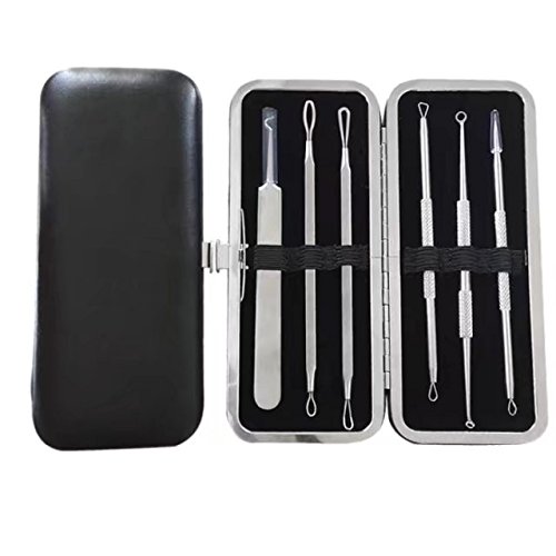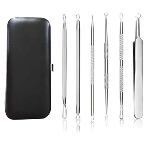 GEBDSM 6 in 1 Professional Surgical Blackhead Remover Tools,Whitehead Popping Zit Blemish and Splinter Acne Pimple Removal Kit