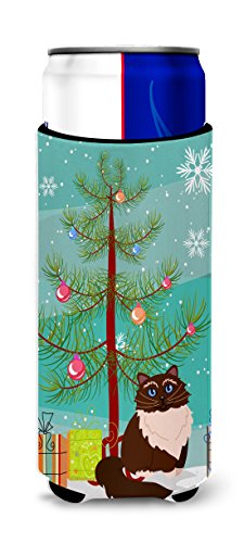 Caroline's Treasures Himalayan Cat Merry Christmas Tree Michelob Ultra Hugger For Slim Cans, Slim Can, Multicolor